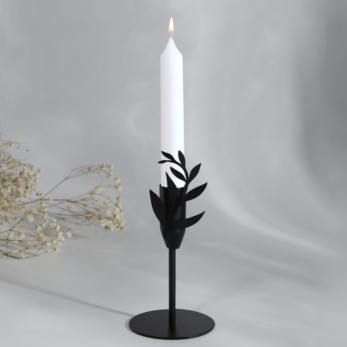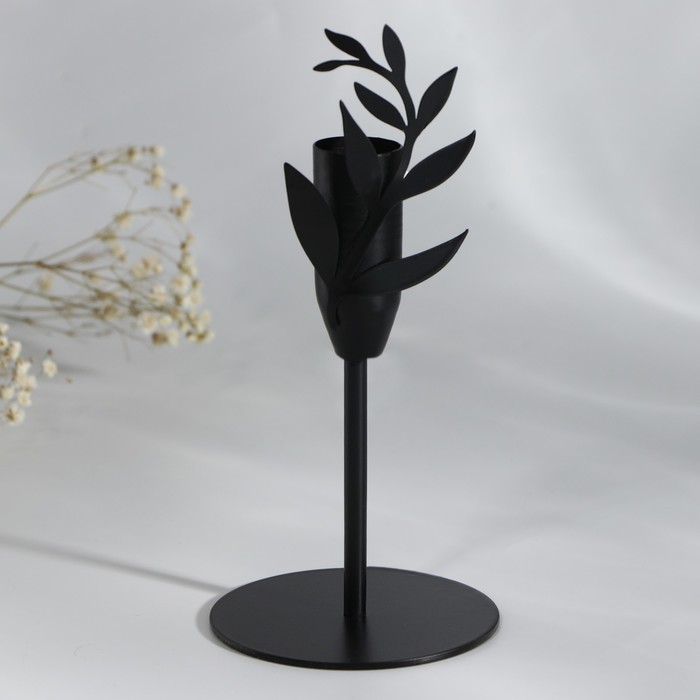 Подсвечник «Листики», черный, 7,4 х 15,3 см