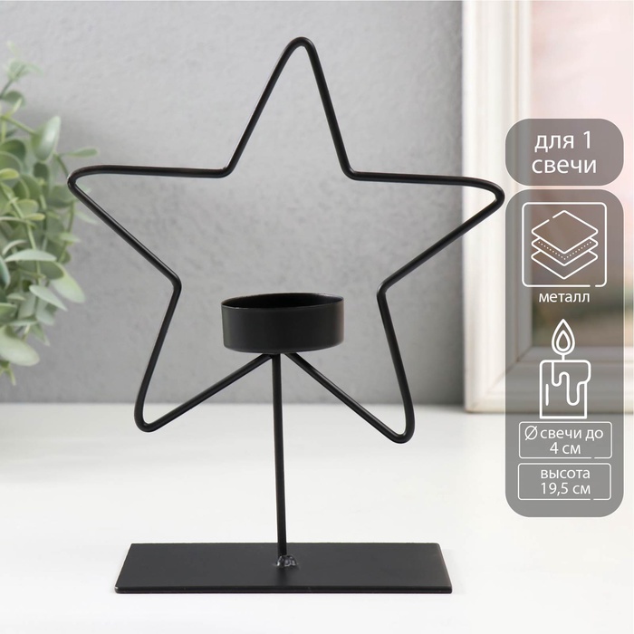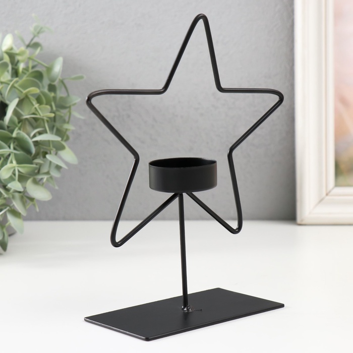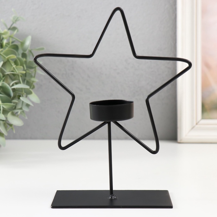 Подсвечник металлический на 1 свечу «Звезда», d=4 см, чёрный, 14.5?6?19.5 см
