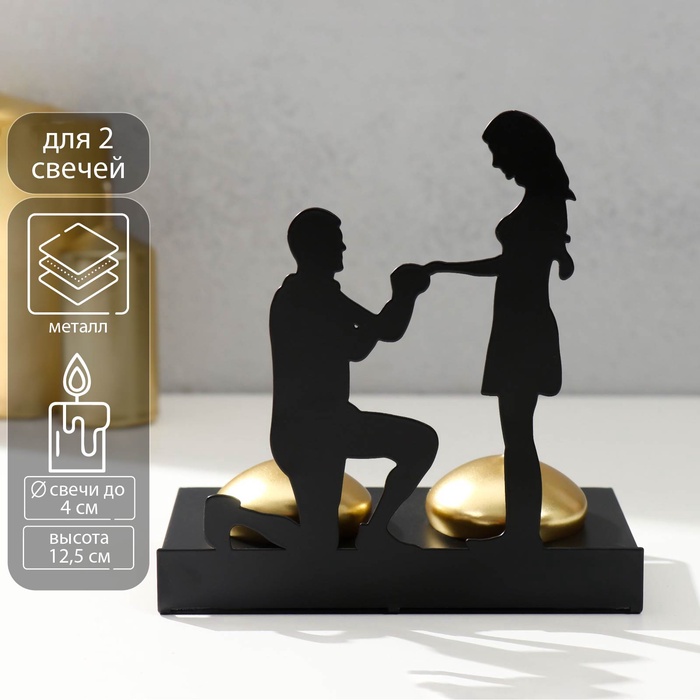 Подсвечник металлический на 2 свечи «Предложение», чёрный, 12.5?12?6.8 см