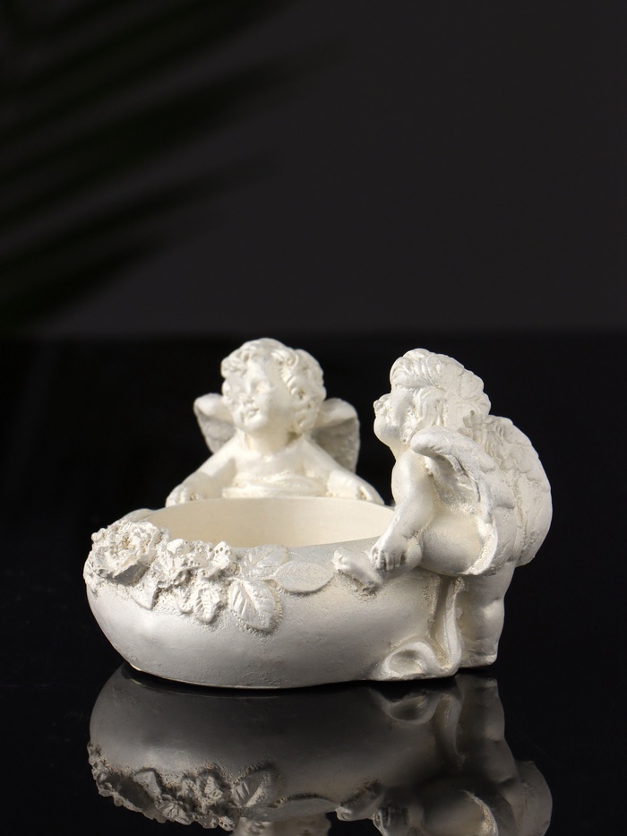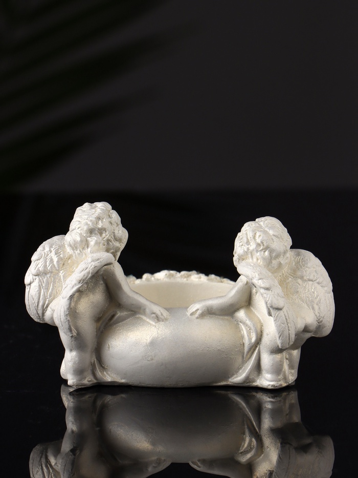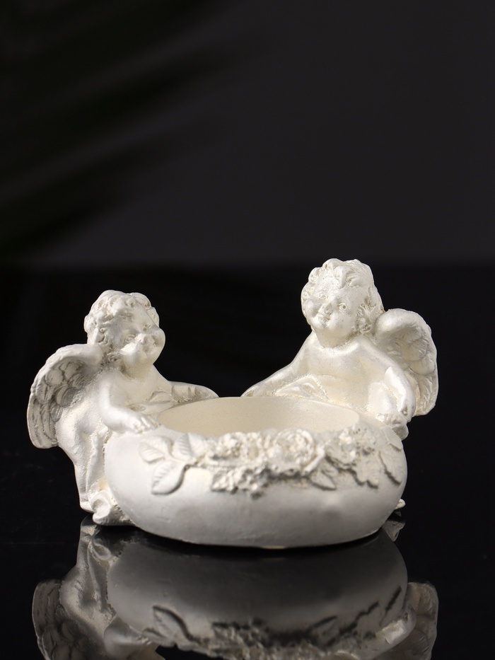 Подсвечник на 1 свечу «Ангелы на чаше», гипс, 7?7 см, перламутр