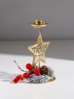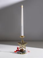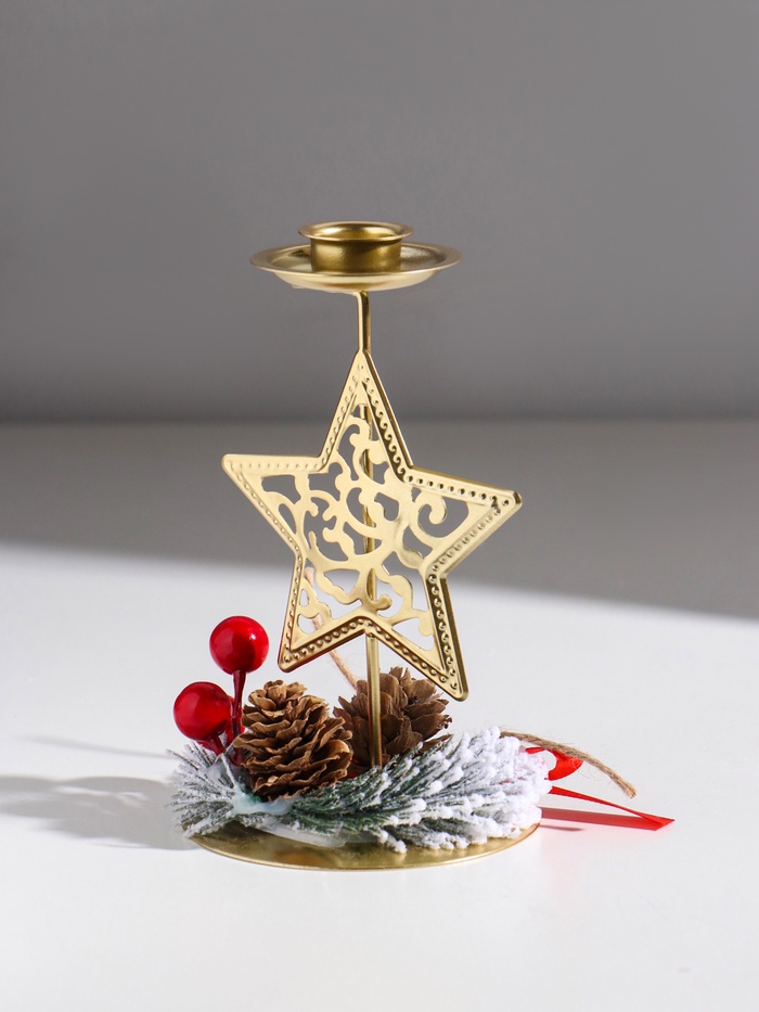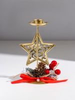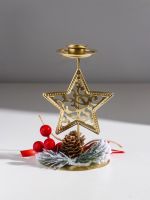 Подсвечник на 1 свечу «Ажурная звезда с новогодним декором», металл под золото, d=2 см, 9?9?15.5 см