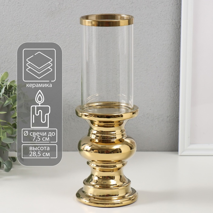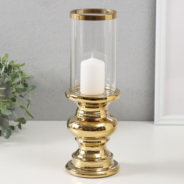Подсвечник на 1 свечу «Грация», керамика, стекло, d=7.5 см, золото, 10?10?28.5 см