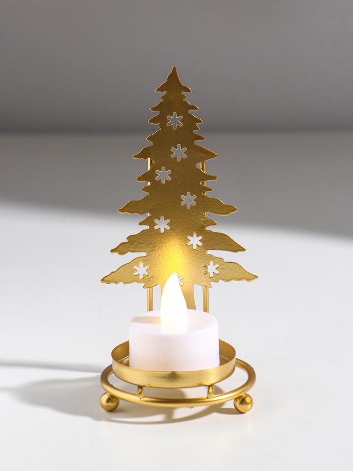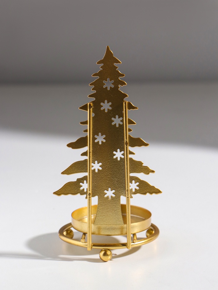 Подсвечник на 1 свечу «Ёлочка со звёздами», металл под золото, d=5 см, 6.5?6.5?13.5 см