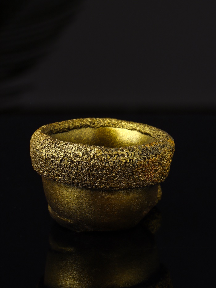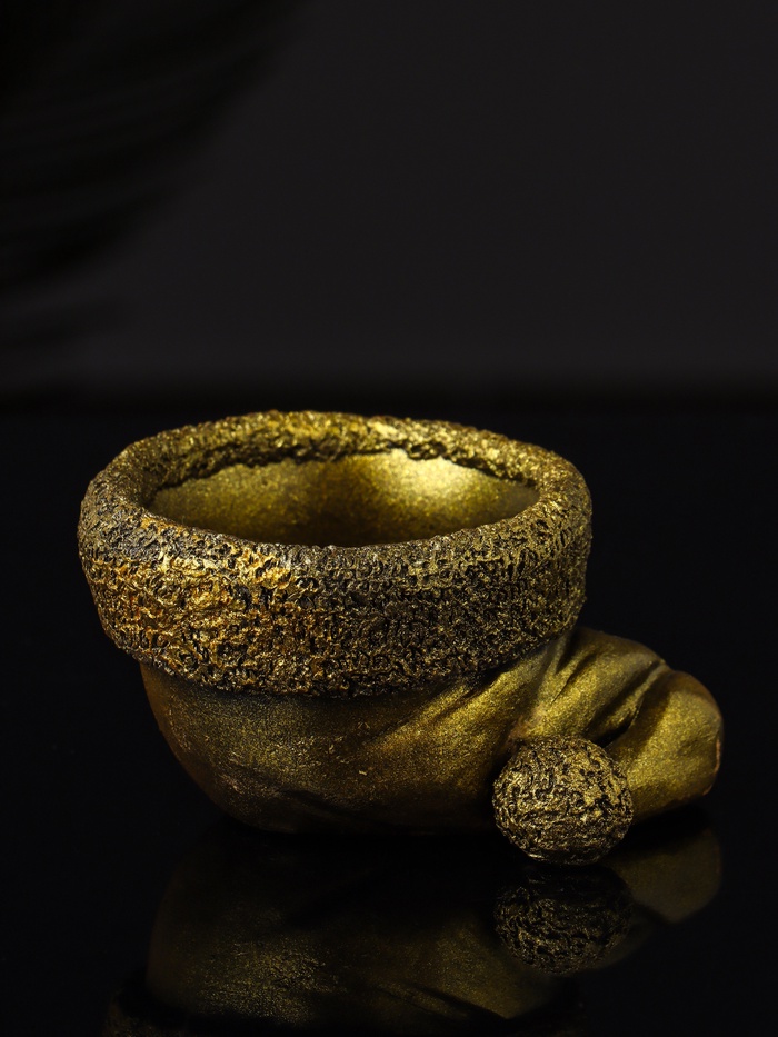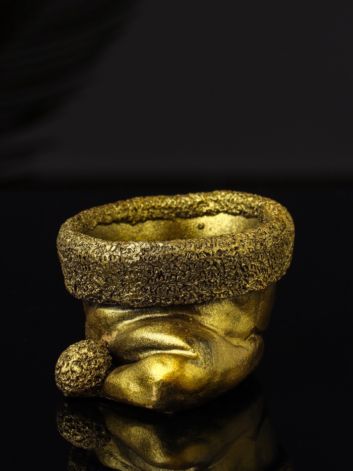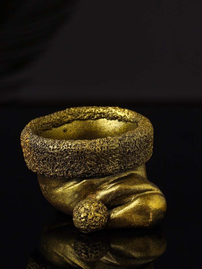 Подсвечник в форме колпака с золотистым покрытием из гипса — идеальное решение для создания уютной и праздничной атмосферы в доме. Его лаконичный дизайн и теплый металлический оттенок гармонично впишутся в интерьер, подчеркивая торжественность момента и добавляя нотку изысканности.