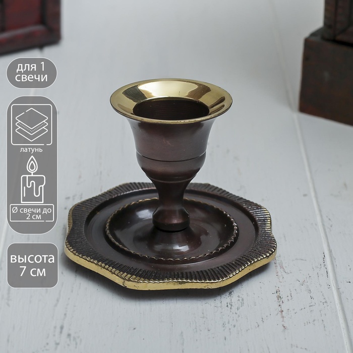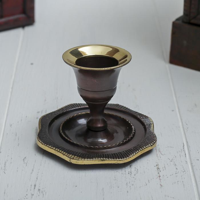 Индийским мастерам удалось объединить классический стиль подсвечника и барокко. Он выполнен из латуни, вручную отливался каждый элемент, обрабатывался и полировался так, чтобы отражались тени в его статной фигуре. Подсвечник на 1 свечу «Видья», 6?7?7 см — то, что понравится даме с хорошим вкусом, пригодится в качестве подарка на семилетнюю годовщину свадьбы и великолепно дополнит интерьер каминного зала, спальной, гостиной или прихожей.