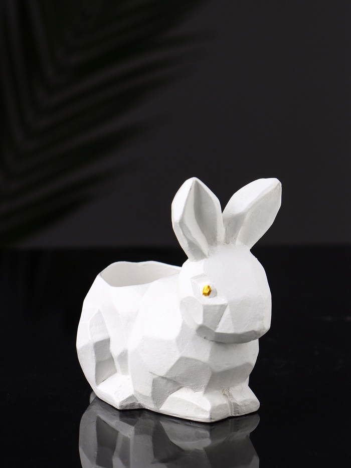 - Элегантный дизайн: геометрическая форма зайца сочетается с белым цветом, создавая современный и стильный образ.