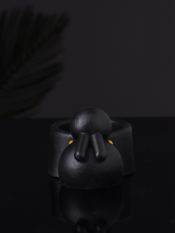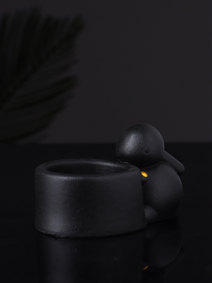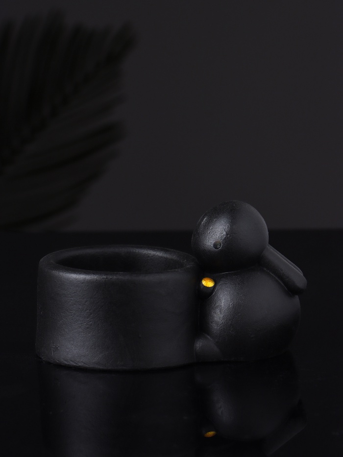 Тонкое сочетание изящества и функциональности — этот подсвечник с фигуркой зайца станет стильным акцентом в вашем интерьере. Чёрный цвет придаёт ему особую глубину и универсальность, позволяя гармонично вписаться как в современный, так и в классический стиль оформления.