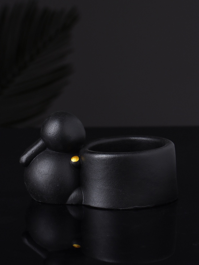 Подсвечник на 1 свечу «Заяц с чашей», гипс, 8?6?4, чёрный