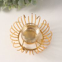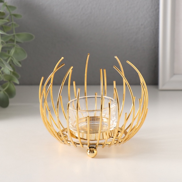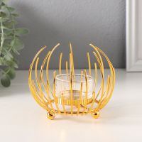 Подсвечник на 1 свечу «Золотой цветок из прутьев», металл, стекло, d=4.5 см, 12?12?9 см