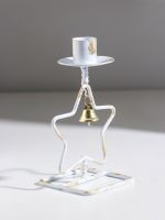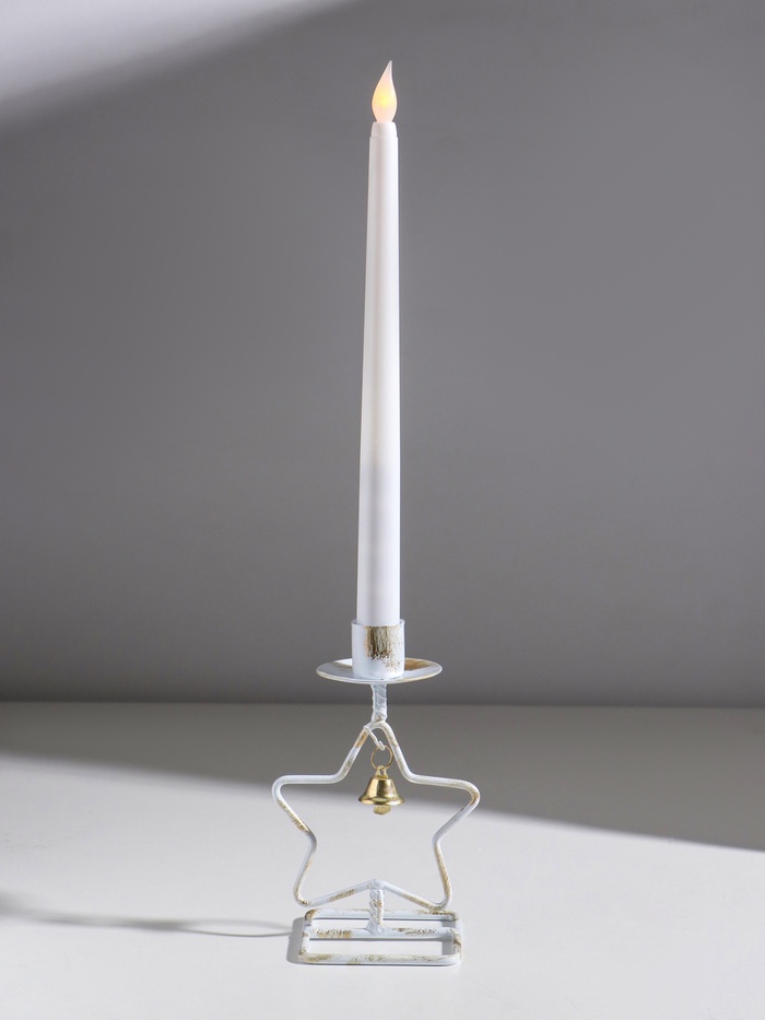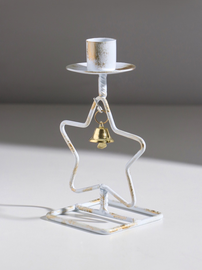 Подсвечник на 1 свечу «Звезда с колокольчиком», металл, белый с патиной, d=2.3 см, 9.3?7.4?17 см