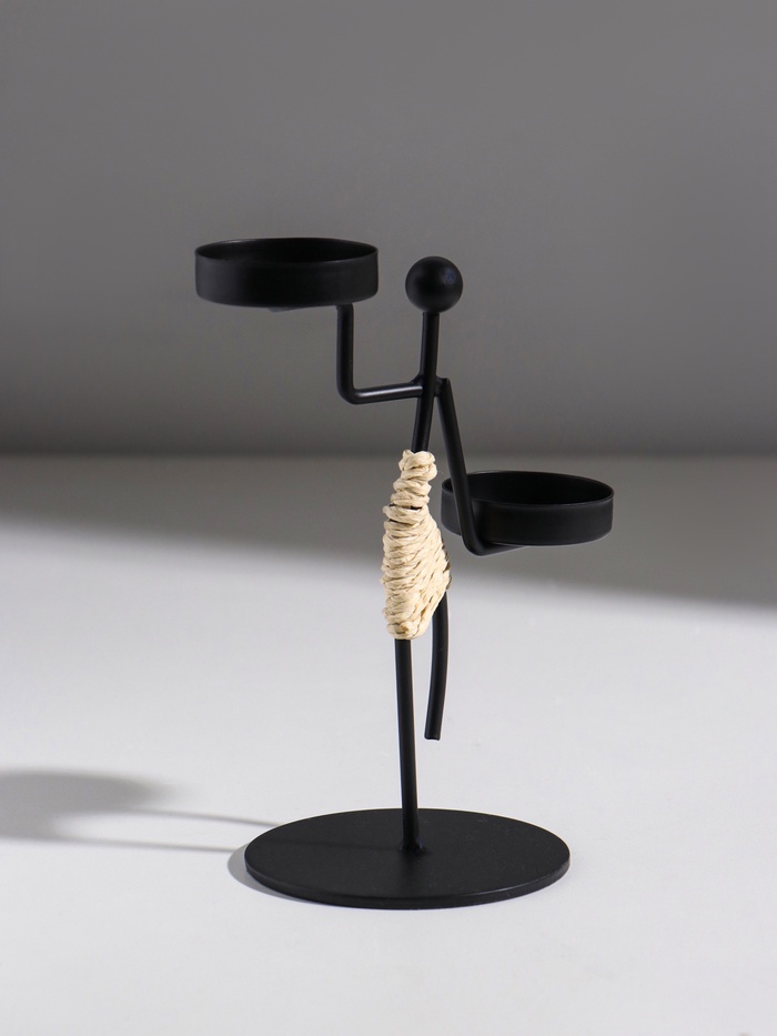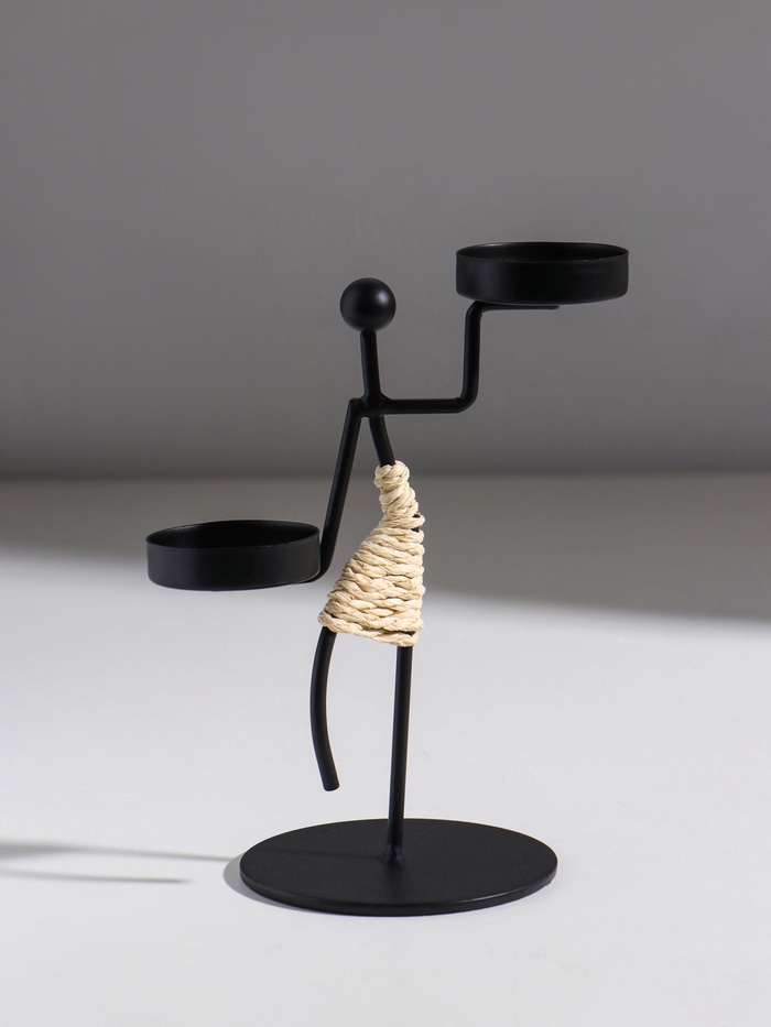 Этот металлический подсвечник на две свечи воплощает в себе гармонию искусства и функциональности. Изящный силуэт танцующей аборигенки, выполненный в чёрном цвете, придаёт интерьеру выразительный акцент и создаёт атмосферу уюта и тепла.
