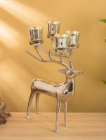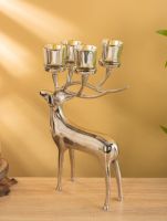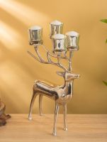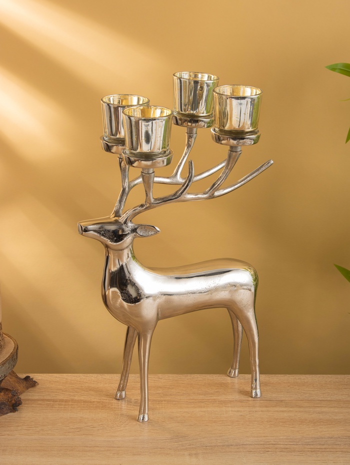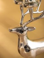 Подсвечник «Олень» из алюминия - величественное новогоднее украшение для создания праздничной атмосферы. Впечатляющие размеры делают его центральным элементом декора, а серебристая поверхность придает благородный блеск. Четыре рожка для свечей позволяют создать роскошную световую композицию.