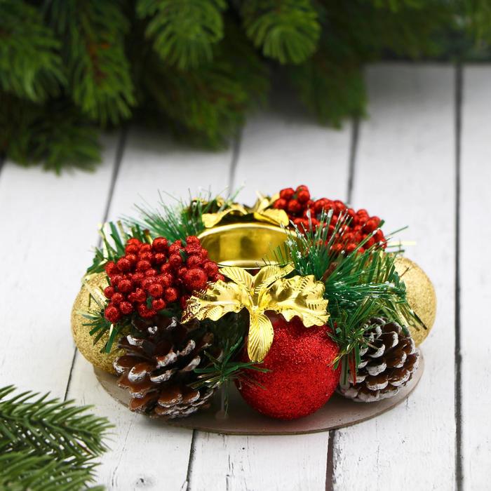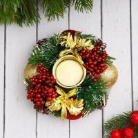 Такой подсвечник станет эффектным дополнением праздничного интерьера, добавляя тепла и выразительности. Его удобно разместить на столе или полке, сочетая с другими новогодними украшениями. Золотисто-красные детали подчёркивают торжественность момента и помогают создать комфортную атмосферу.