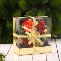 Подсвечник с ягодным декором и золотисто-красным оформлением высотой 6 см предназначен для одной свечи диаметром 4 см. Его дизайн объединяет элементы ар-деко, классики и новогоднего барокко, подчёркивая праздничную атмосферу и гармонично вписываясь в разные стили интерьера.