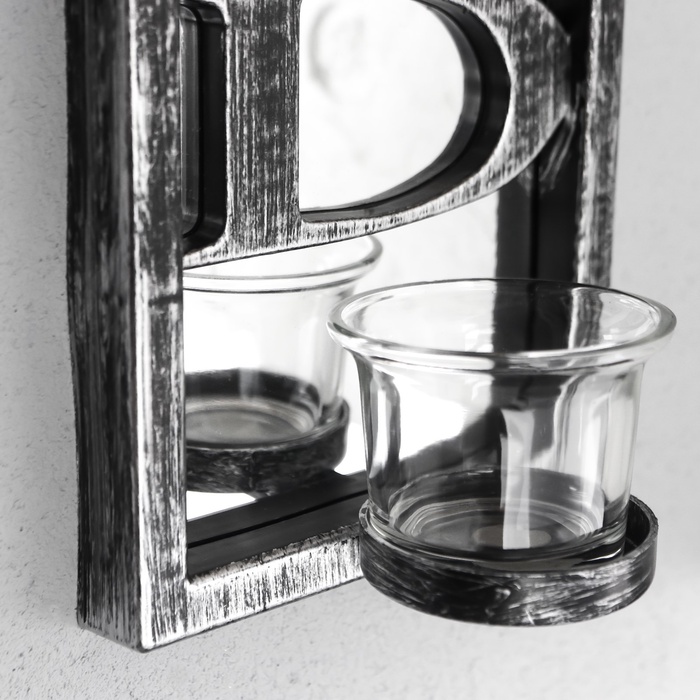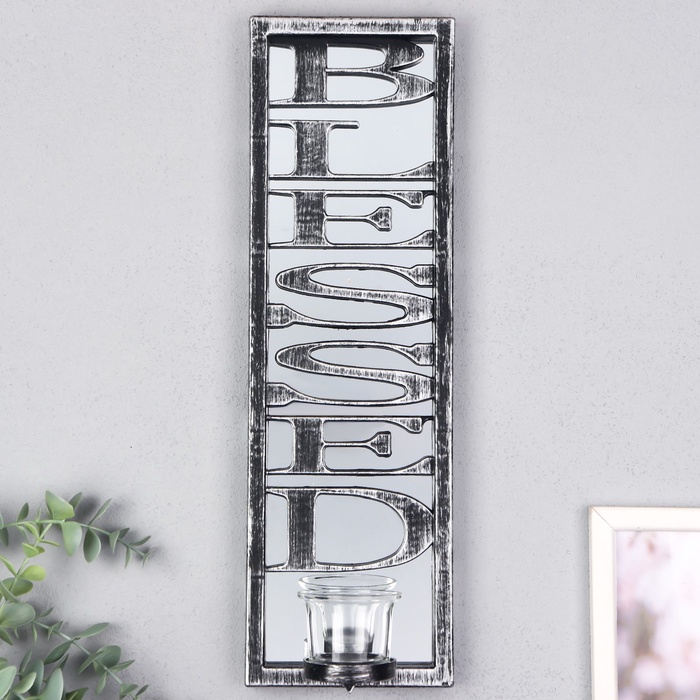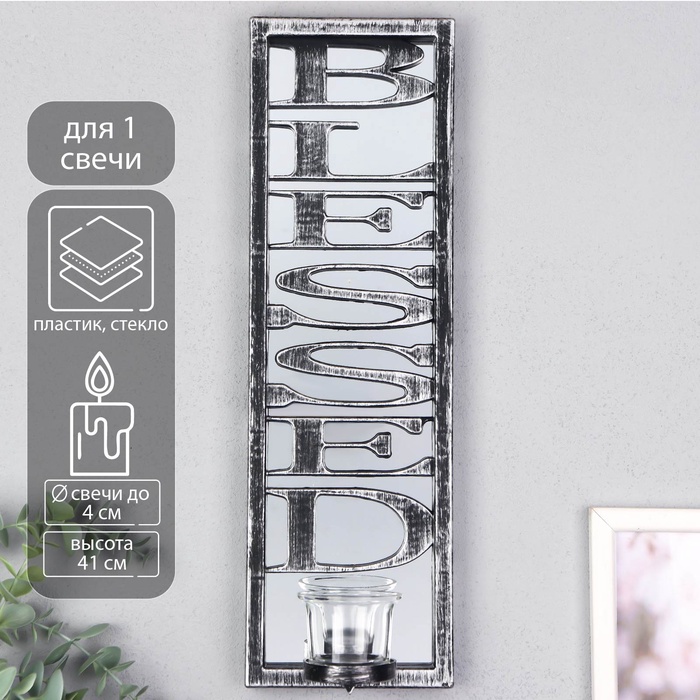Подсвечник настенный на 1 свечу «Отражение благословения», зеркальный, пластик, стекло, d-4 см, серебро, 8?12?41 см
