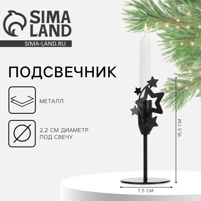 Подсвечник новогодний «Новый год: Звезды», черный, 7,4 х 15,3 см, диам. под свечу 2,2 см