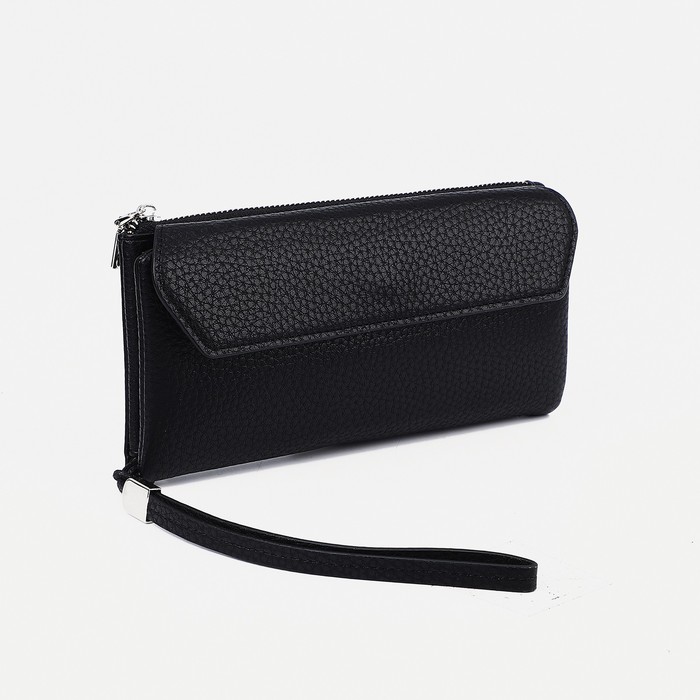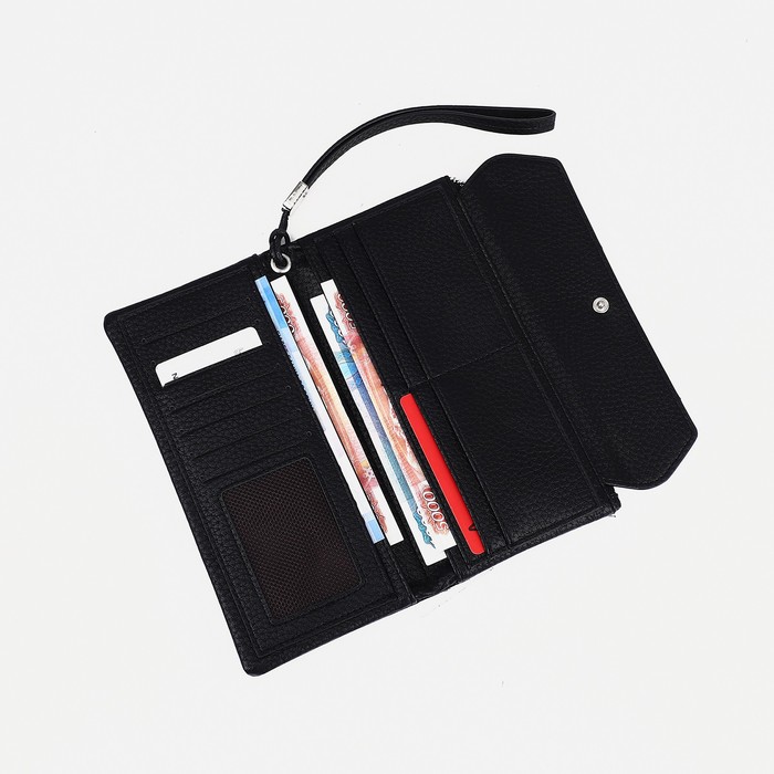 Портмоне мужское на кнопке, наружный карман, с ручкой, цвет чёрный