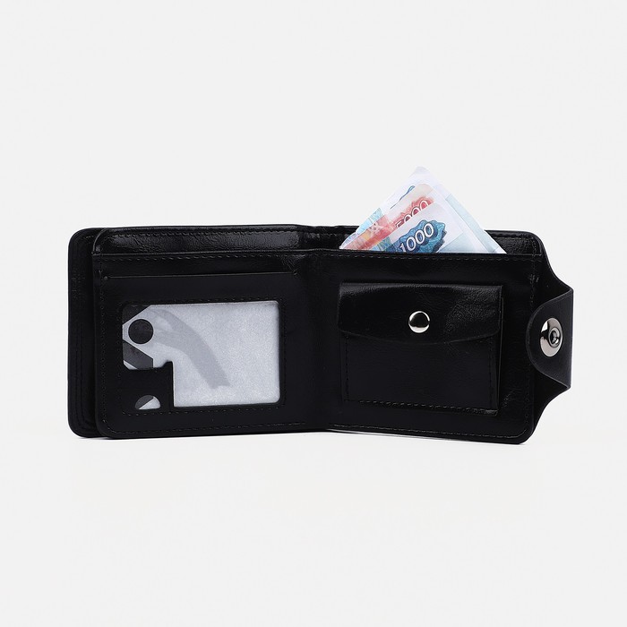 Портмоне мужское на магните, отдел для купюр, для карт, для монет, цвет чёрный