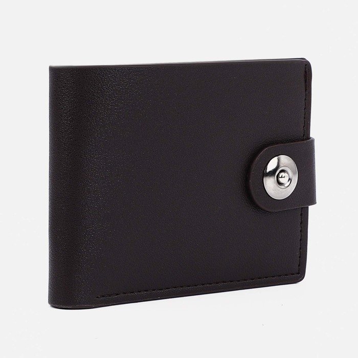 Мужской кошелёк с магнитной застёжкой в тёмно-коричневом цвете — практичное решение для повседневного использования. Искусственная кожа приятна на ощупь и сохраняет презентабельный вид, а магнит надёжно фиксирует содержимое.