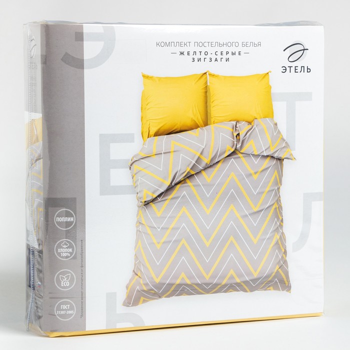 Постельное бельё Этель 1,5 сп «Жёлто-серые зигзаги» 143х215см, 150х214см, 70х70см-2 шт