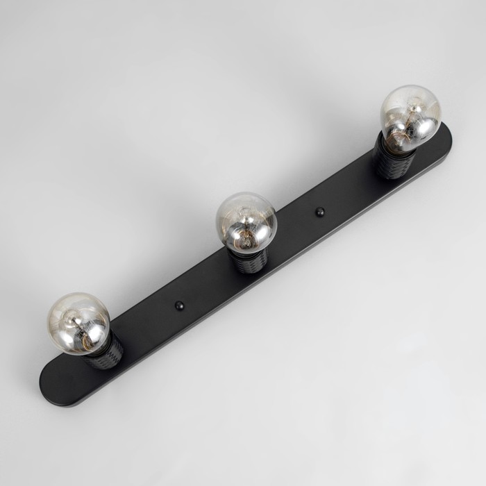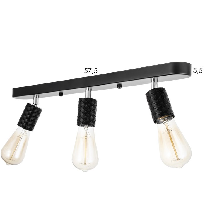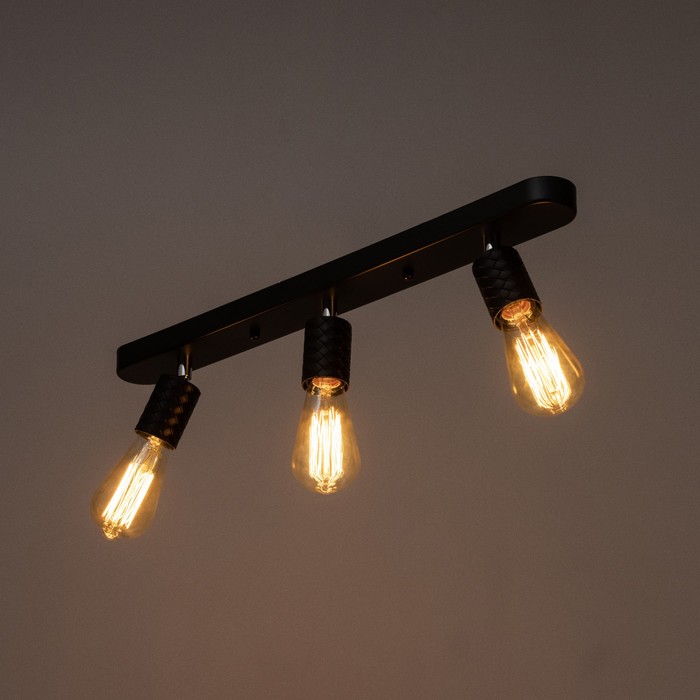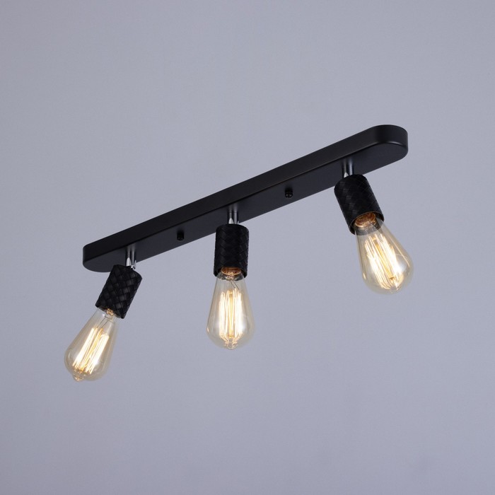 Вид лампы|Накаливания;Количество ламп|3;Стиль|Лофт;Цоколь|E27;Длина, см|30;Ширина, см|6;Высота, см|16;Минимальная высота от потолка, см|16;Максимальная высота от потолка, см|16;Мощность на цоколь, Вт|40;Степень защиты|IP20;Назначение по помещениям|Кафе, рестораны;Назначение по помещениям|Лестничный пролёт;Назначение по помещениям|Магазин;Назначение по помещениям|Мебель;Назначение по помещениям|Балкон;Материал основания|Металл;Цвет основания|Чёрный;Тип рассеивателя|Без плафонов;Тип подвеса|Без подвеса (потолочный);Управление светильником|Без пульта;Подходит для натяжных потолков|Да (при использования светодиодных ламп);Тип крепления|На планку;Стиль|Лофт;Тип источника освещения|Лампа не в комплекте;