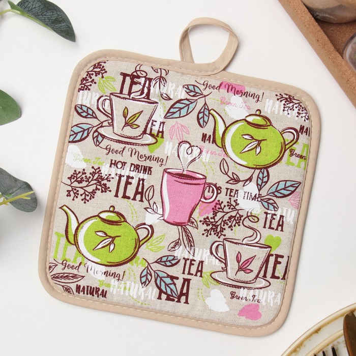 Прихватка Чайное время 18х18 полулён шелкография, 160г/м