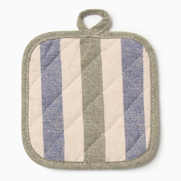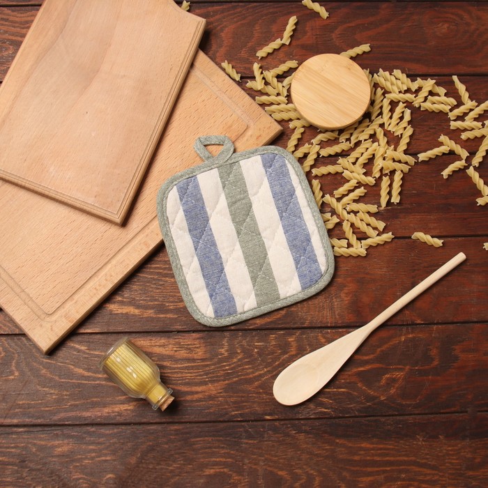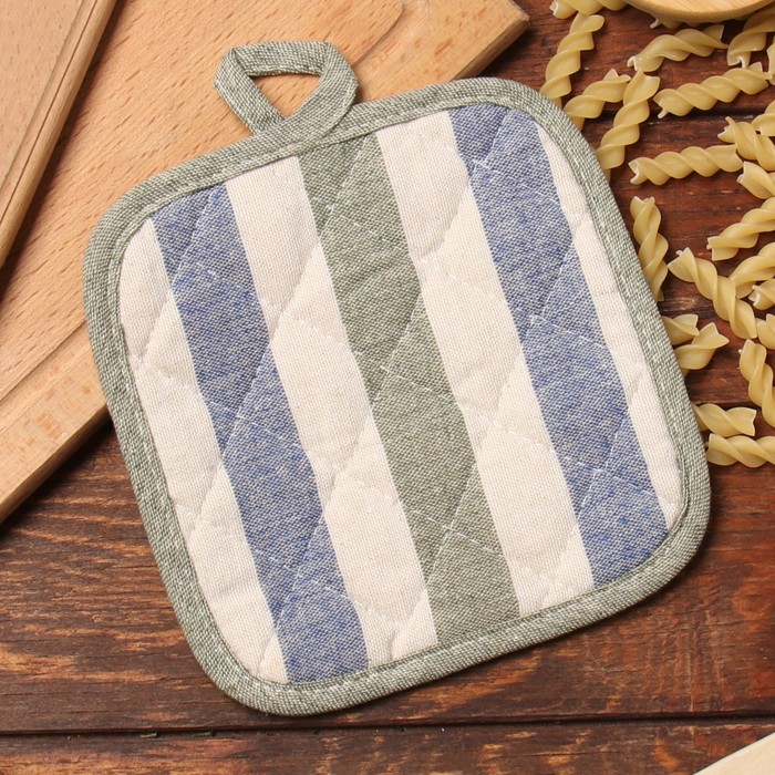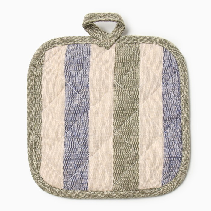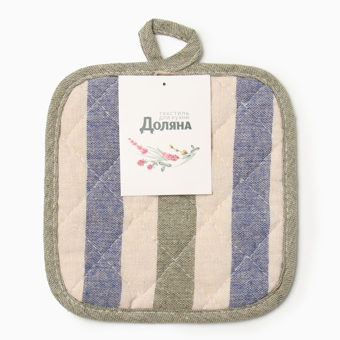 Прихватка Доляна «Полоса», син/зел, 17×17 см, 50% п/э, 50% хлопок