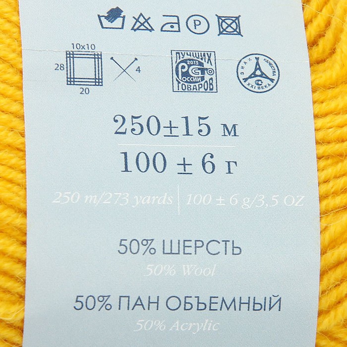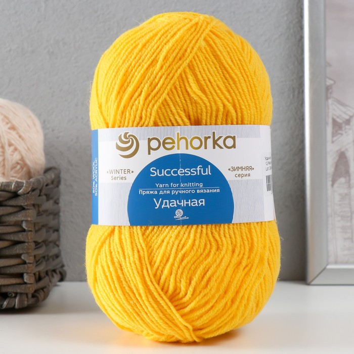 Пряжа для вязания спицами, крючком «Пехорский текстиль. Удачная», 50% шерсть, 50% акрил, 250 м/100 г, (12 желток)