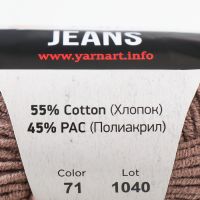 Пряжа для вязания спицами, крючком YarnArt, Jeans, 55% хлопок, 45% акрил, 160 м/50 г, (71 кофейный)