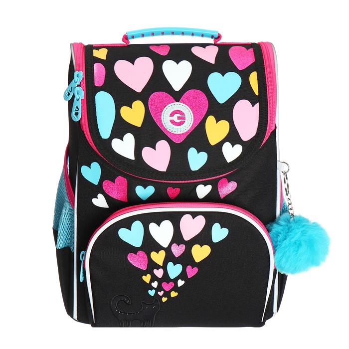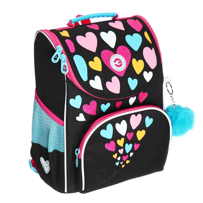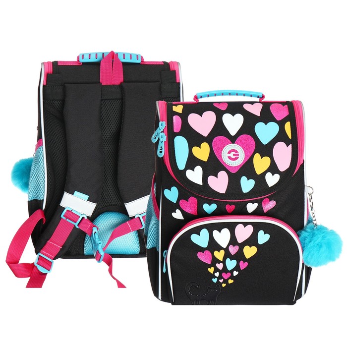 Ранец школьный Стандарт, 33?25?13 см, Grizzly, + мешок для обуви, плюшевый, чёрный