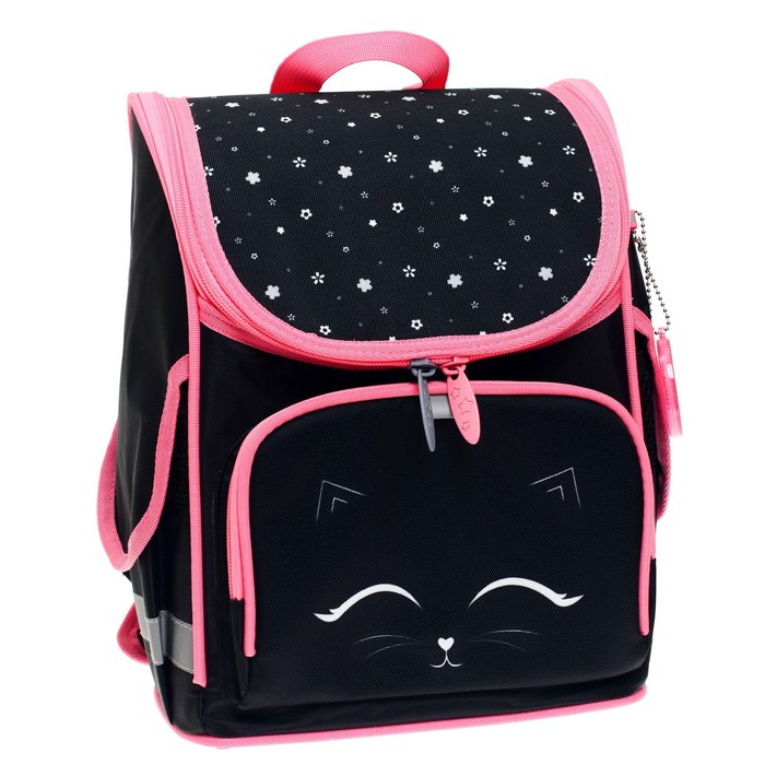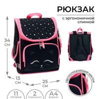 Ранец школьный Стандарт, 34 х 25 х 13 см, Calligrata М "Котик", чёрный
