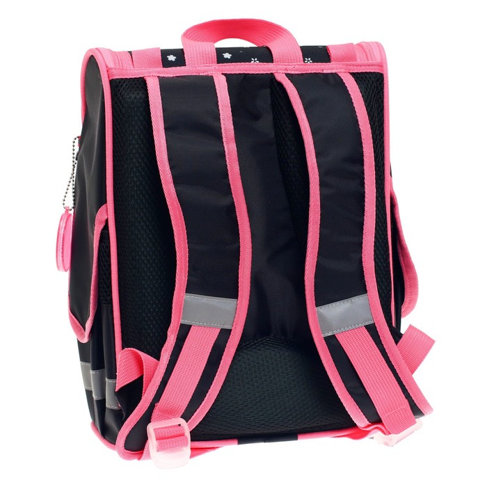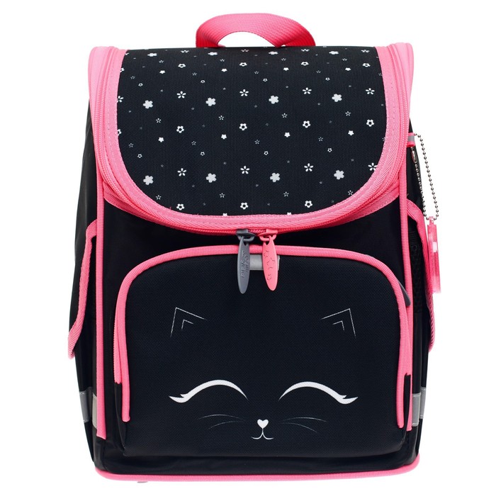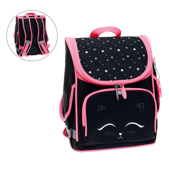 Набор|Нет;Цвет|Разноцветный;Цвет|Чёрный;Цвет|Розовый;Для кого|Для девочки;Возраст|1-5 класс;Особенности ранцев|Жёсткая эргономичная спинка;Количество отделений|1;Количество лямок|2;Лицензия|Нет;Рисунок|Да;Материал|Текстиль;Тип|Ранец ;Штрихкод на единице товара|Да;Изображение|Узоры;Изображение|Кот/Кошка;Размер|До 15 литров (маленький);