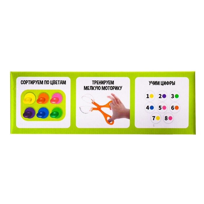 Необычные ножницы Монтессори помогут малышу научиться захватывать предметы в специальные ложечки. Подходит для шариков-растушек, воды, песка.