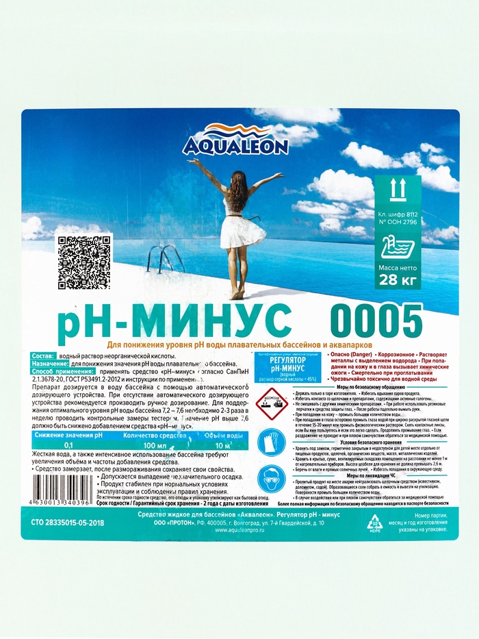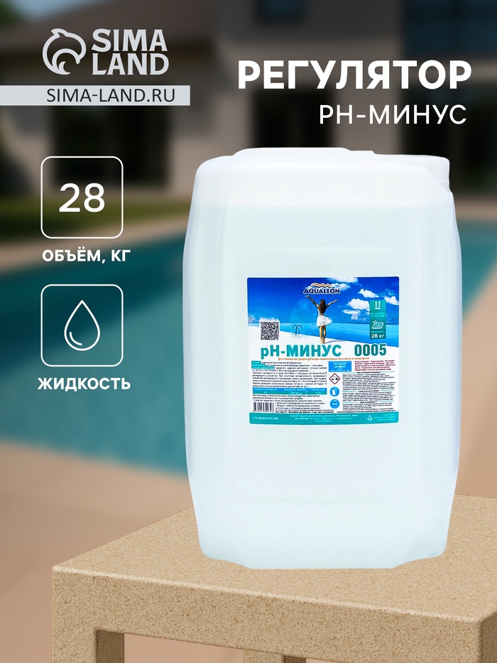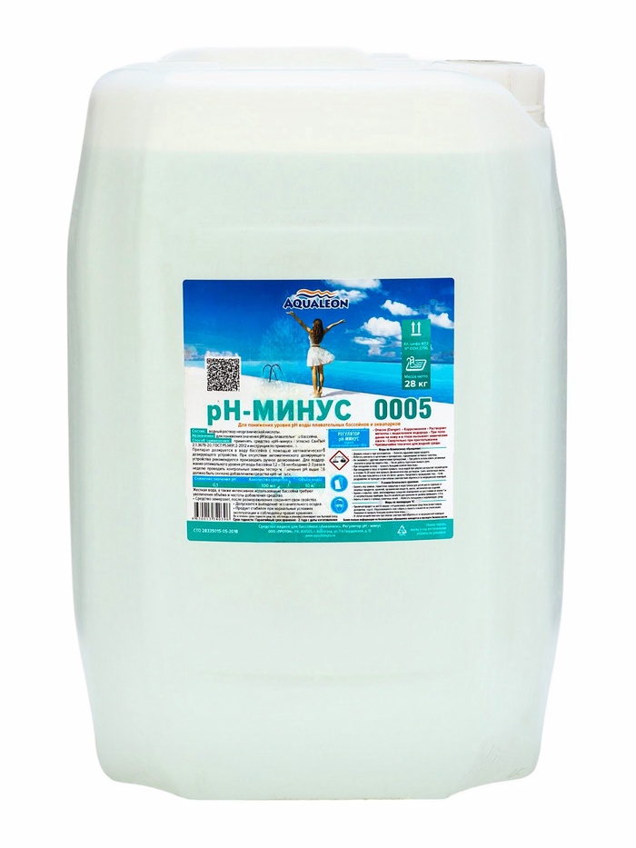 Регулятор Aqualeon — это жидкое средство, которое понижает значение рН воды плавательного бассейна.