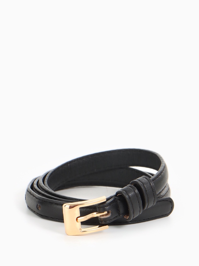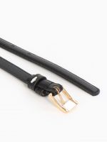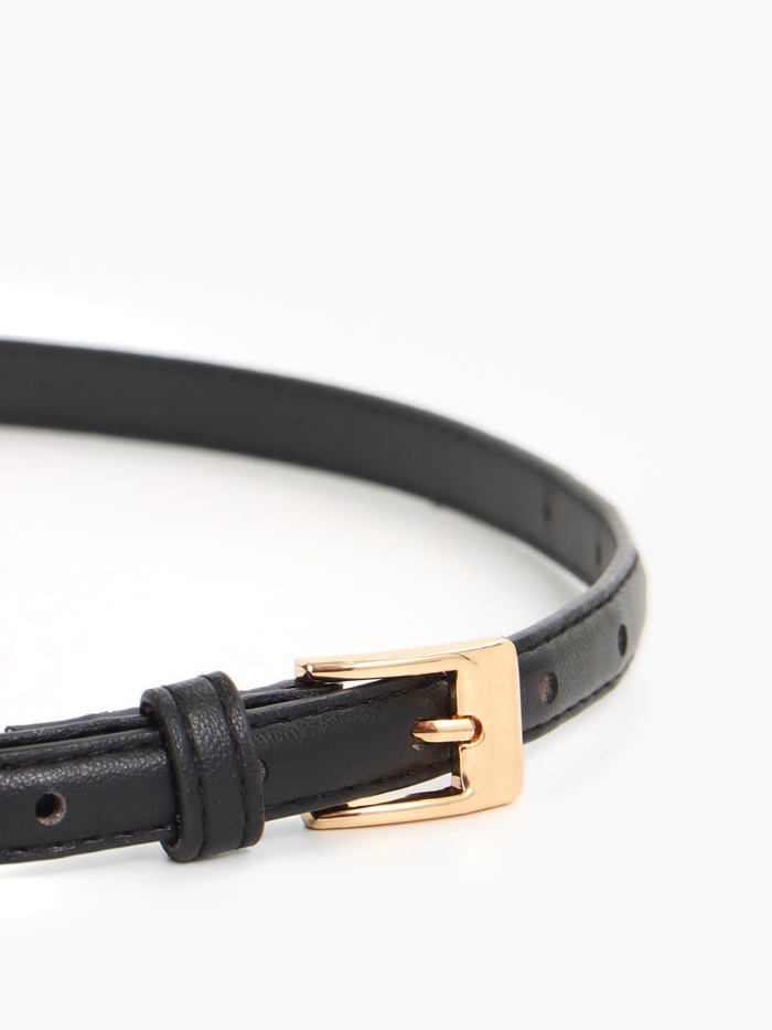 Изящный женский ремень с золотой пряжкой — универсальный аксессуар для повседневных образов и особых случаев. Узкая 1.3-сантиметровая ширина подчеркнёт талию, не перегружая силуэт.