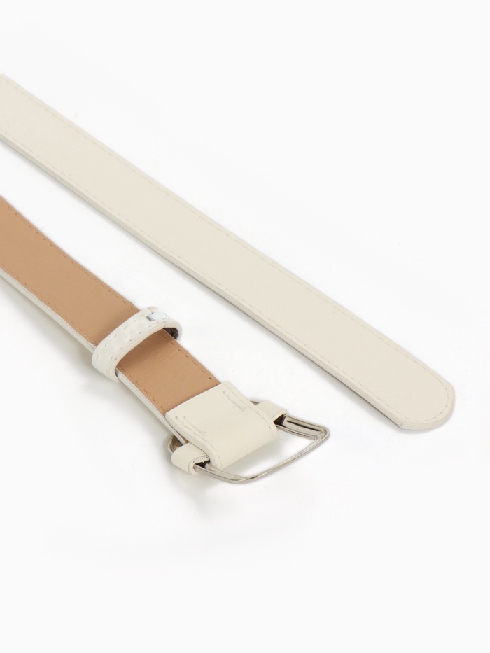 Широкий белый ремень с серебряной застежкой — свежий акцент для летних образов. Классическая ширина 2.7 см делает его универсальным выбором для платьев и брюк.