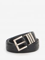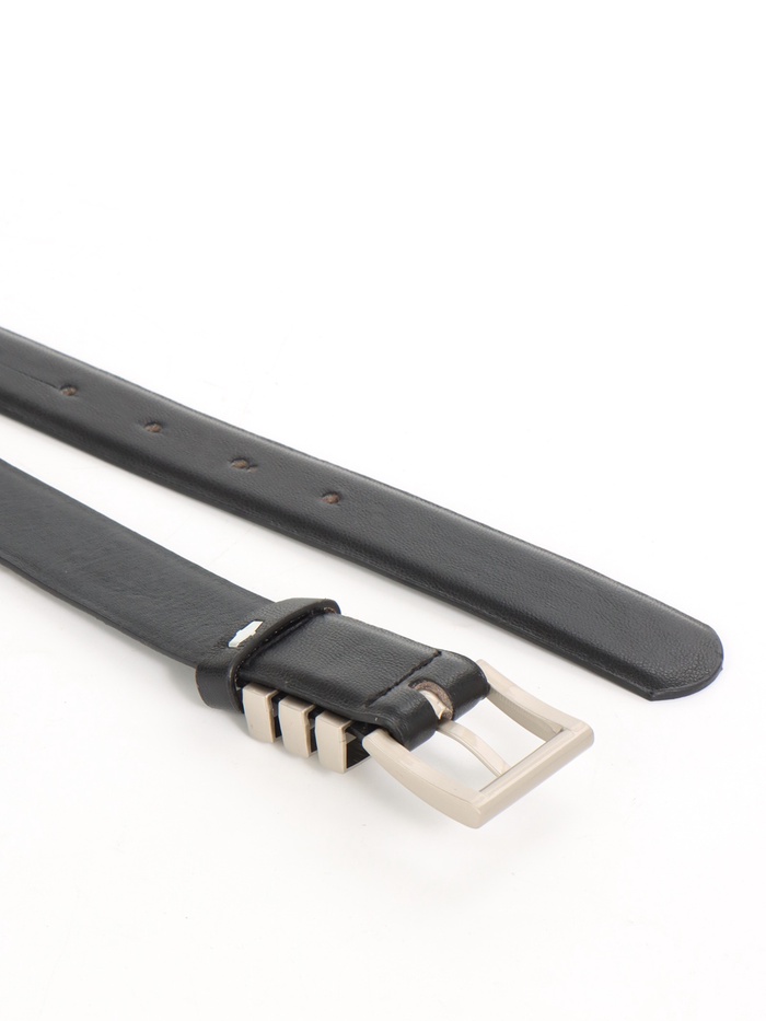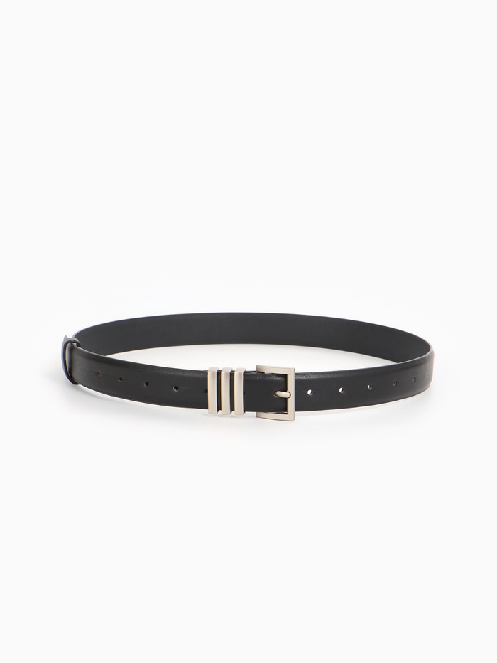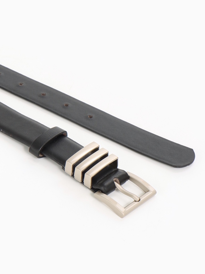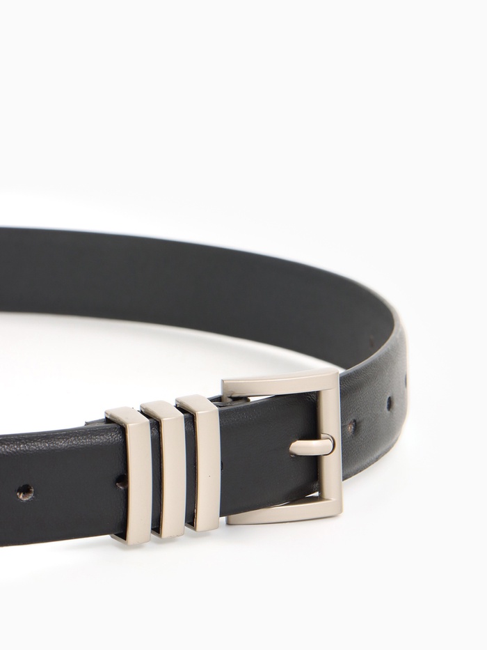 Широкий черный ремень с серебряной пряжкой — универсальный аксессуар для создания стильных образов. Оптимальная ширина делает его идеальным выбором для брюк и платьев.
