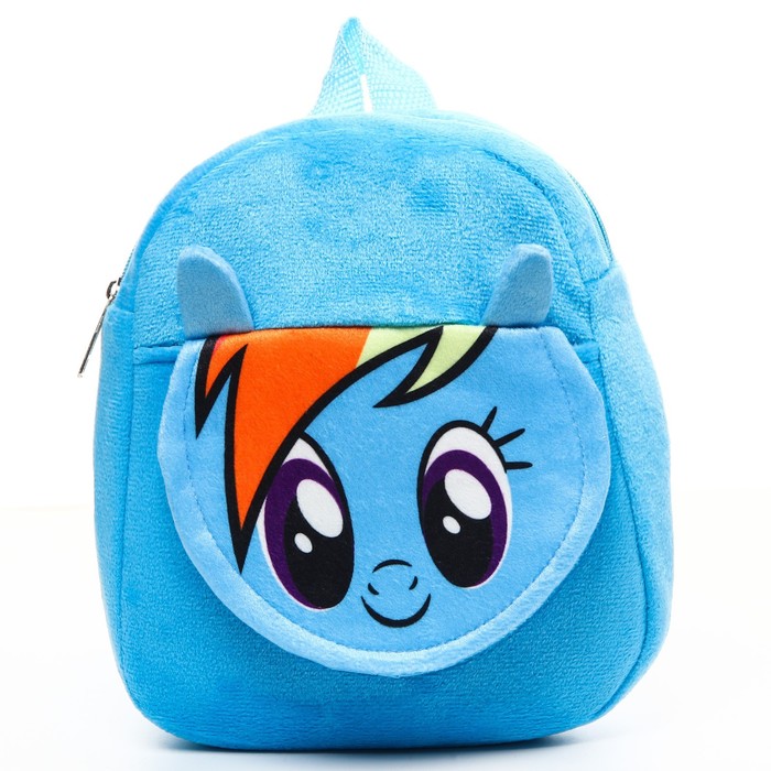 Рюкзак детский для девочки, плюшевый на молнии, с карманом, 19 х 22 см "Радуга Дэш", My little Pony