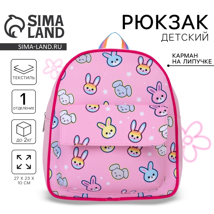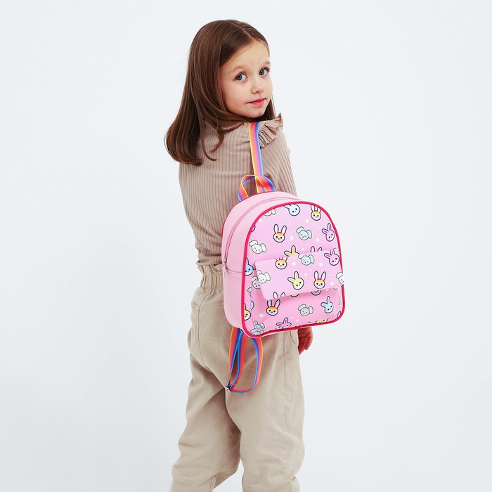 Рюкзак детский для девочки текстильный «Зайчики», 27х23×10 см