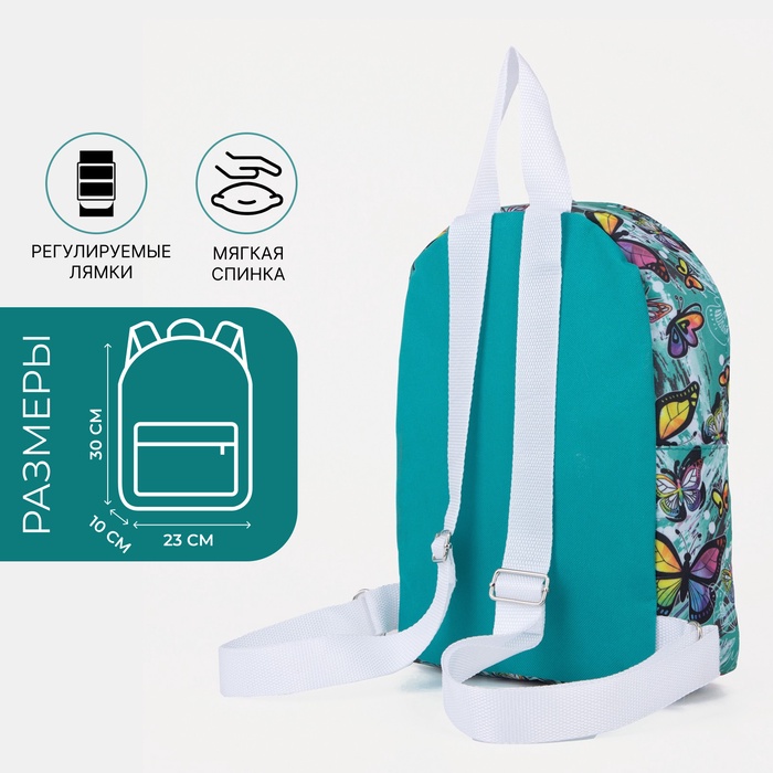 Этот бирюзовый рюкзак с бабочкой создан для маленьких школьниц, которые только начинают свой учебный путь. Он помогает легко нести всё необходимое для уроков, сохраняя спину здоровой, а настроение — радостным.