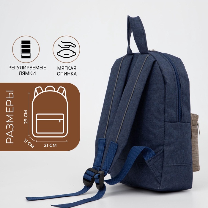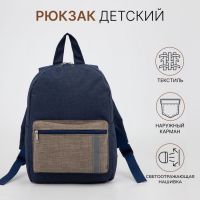 Рюкзак детский на молнии, наружный карман, светоотражающая полоса, цвет синий