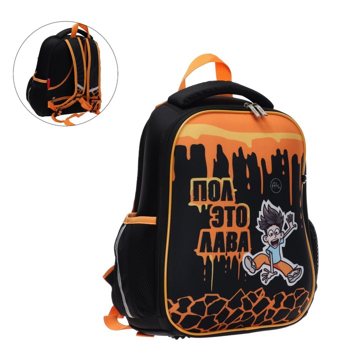 Рюкзак каркасный 35?27?13 см, Hatber Ergonomic Min «Влад А4», чёрный/оранжевый NRk_70104