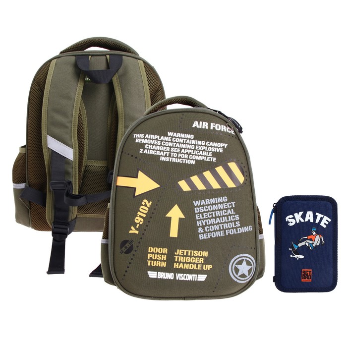 Рюкзак каркасный 38×30×20 см, с пеналом, Bruno Visconti «Внимание»