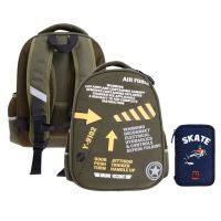 Набор|Да;Цвет|Зелёный;Для кого|Для мальчика;Возраст|5-11 класс;Возраст|1-5 класс;Особенности ранцев|Грудное крепление;Особенности ранцев|Жёсткая эргономичная спинка;Особенности ранцев|С наполнением;Количество отделений|2;Количество лямок|2;Лицензия|Нет;Рисунок|Да;Материал|Текстиль;Тип|Рюкзак каркасный;Штрихкод на единице товара|Да;Изображение|Надписи, цифры, буквы;Изображение|Военная тематика;Размер|Более 20 литров (большой);