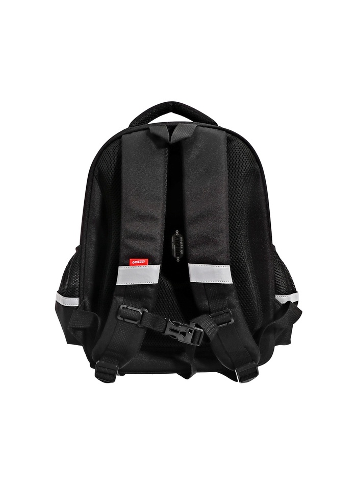 Уже с начальных классов детям нужно носить в школьном рюкзаке книги, тетради и сменку. Нагрузки большие и GRIZZLY помогает с ними справляться. Ранец серии RAz рассчитан на рост от 125 до 135 см. В него поместятся все школьные принадлежности. Основное отделение разбито на три отсека: для книг, тетрадей и папок А4. В дополнительное помещается сменка (есть три кармашка для мелочей). В боковых можно носить воду или перекус. Каждый предмет на своем месте. Ранец отлично подойдёт для первоклассника. У портфеля формованная лицевая часть, жесткая анатомическая спинка и жесткое дно на ножках. Содержимое надежно защищено. А еще такая конструкция детского ранца равномерно распределяет нагрузку на спину. Чтобы не уставали руки и плечи, мы сделали широкие лямки и нагрудную стяжку. Для безопасности в темное время суток мы добавили со всех сторон маленького рюкзака светоотражающие элементы. За счет водо- и грязеотталкивающей пропитки сумка долго остается как новая. Если он все же чем-то испачкался, мы рекомендуем ручную стирку в холодной воде. С уважением, команда GRIZZLY