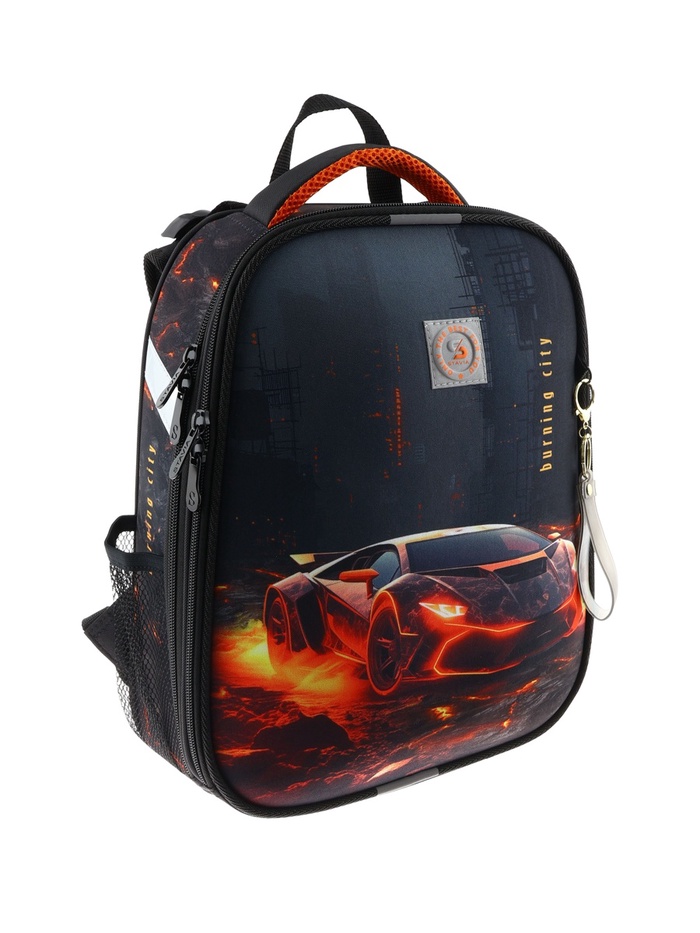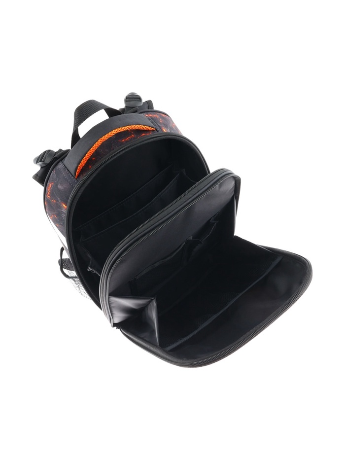 Ранец изготовлен из формованного EVA-материала и высокопрочного непромокаемого полиэстера. Размер 30 х 38 х 16 см. Вес 900 г. Прочные формованные стенки и дно ранца позволяют надежно защитить содержимое от влаги, загрязнений и предотвращают его замятие. Ранец с двумя вместительными отделениями, закрывающимися на реверсивную пластиковую молнию с металлическими «бегунками»; в первом — «плавающие» перегородки для тетрадей и учебников, во втором – большой карман из сетки и карманы-органайзеры для канцелярских принадлежностей