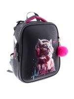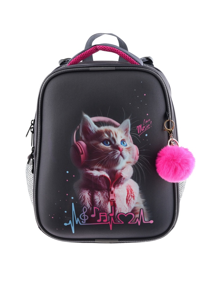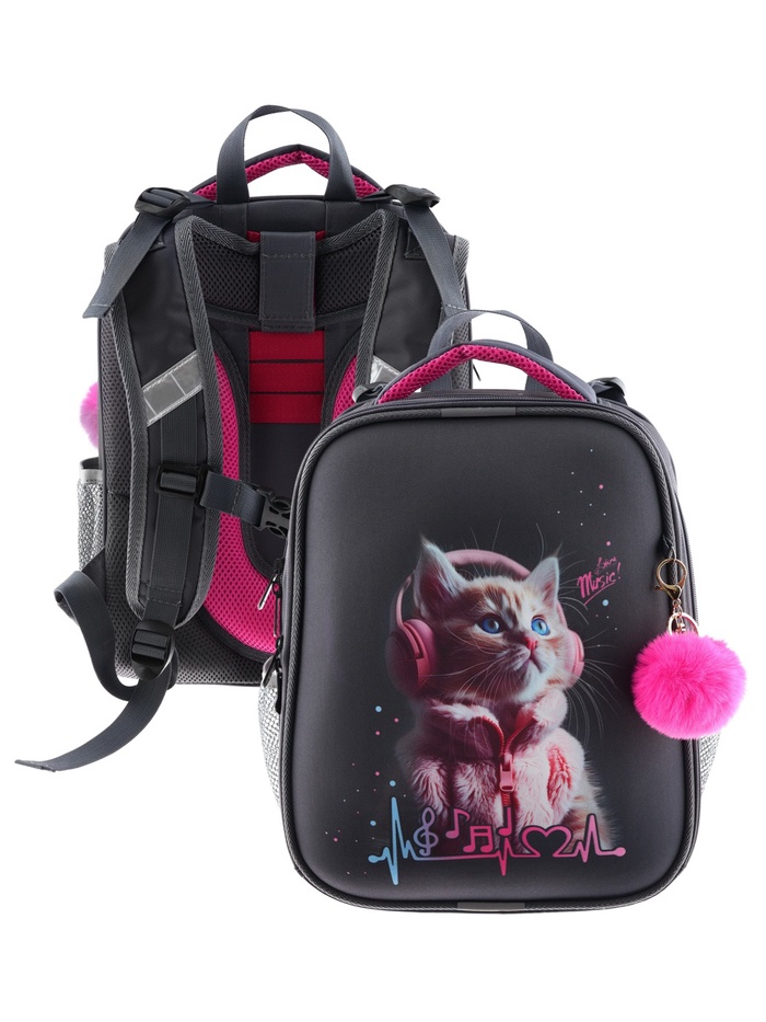 Рюкзак каркасный, школьный, 38?30?16 см, эргономичная спинка «Котик в наушниках»
