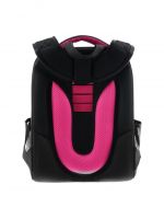 Ранец изготовлен из формованного EVA-материала и высокопрочного непромокаемого полиэстера. Размер 30 х 38 х 16 см. Вес 900 г. Прочные формованные стенки и дно ранца позволяют надежно защитить содержимое от влаги, загрязнений и предотвращают его замятие. Ранец с двумя вместительными отделениями, закрывающимися на реверсивную пластиковую молнию с металлическими «бегунками»; в первом — «плавающие» перегородки для тетрадей и учебников, во втором – большой карман из сетки и карманы-органайзеры для канцелярских принадлежностей