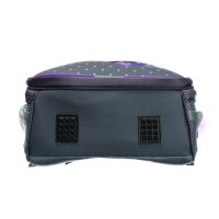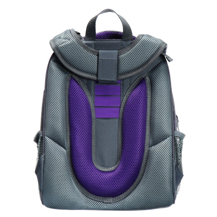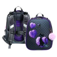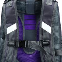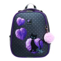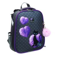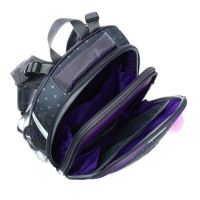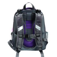 Ранец из формованного EVA-материала и высокопрочного непромокаемого полиэстера. Два вместительных отделения на реверсивной пластиковой молнии; в первом — «плавающие» перегородки для тетрадей и учебников, во втором – большой карман из сетки и карманы-органайзеры. Спинка с анатомическими элементами дополнительно укреплена пластиком, сверху – дышащая трехслойная сетка. Лямки-маечка плотные, мягкие. Регулируются по длине и высоте. Ранец снабжен нагрудным фиксатором и двумя боковыми карманами из прочной сетки. Есть мягкая ручка для переноски и дополнительная петлевая ручка для размещения ранца на крюке. На дне две пластиковые ножки. Ранец имеет светоотражающие элементы на лямках и корпусе. Брелок в комплекте.