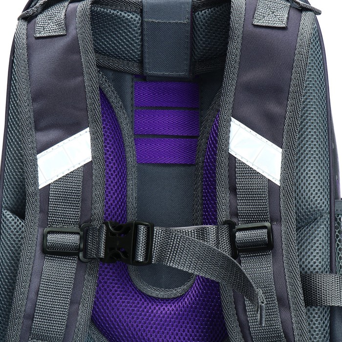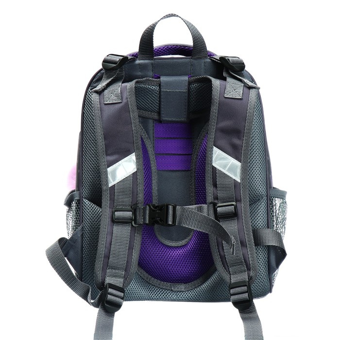 Рюкзак каркасный школьный 38?30?16 см, эргономичная спинка, Stavia «Чёрная кошка», серый
